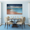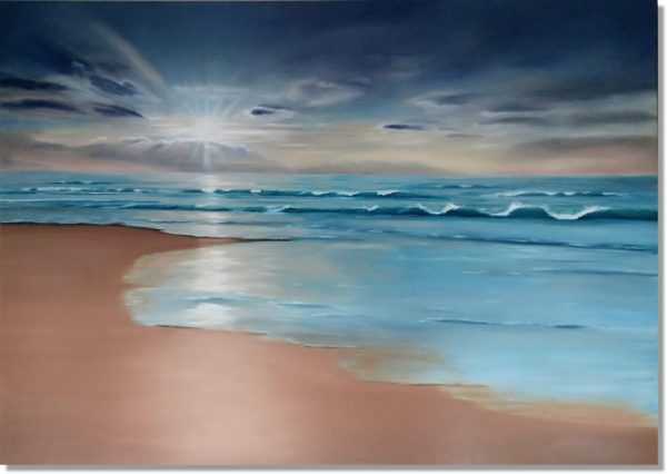 An extra-large linen canvas stretched over an aluminium frame. From my own photos and imagination, I wanted to get that almost dreamlike image of just as the sun rises when all is quiet and at peace.